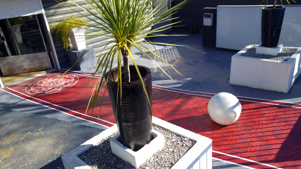 Projet « Salon de coiffure Kamiros » Réalisation d’une fresque décorative au sol de 80 m², conçue comme un tapis graphique contemporain à l’entrée du salon de coiffure Kamiros.L’objectif était de valoriser l’espace dès l’arrivée des clients, en proposant une expérience visuelle unique qui reflète l’identité moderne et élégante du salon. La fresque s’articule autour d’un motif […]