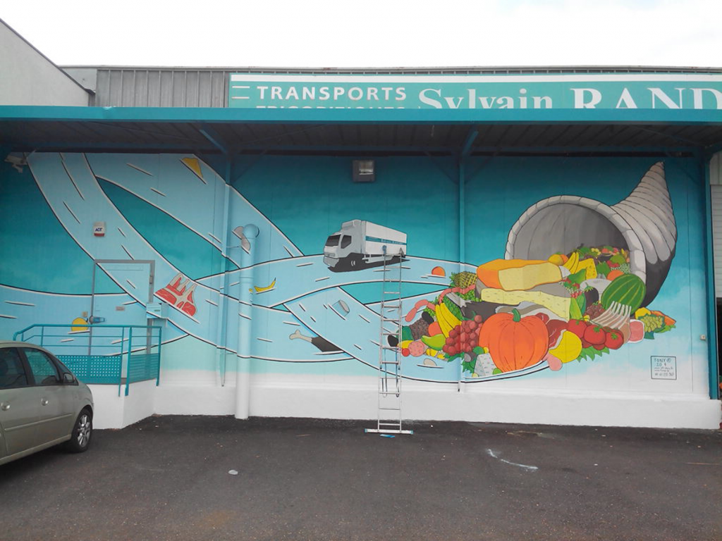 Projet « Transport Sylvain RANDON Réalisation d’une fresque murale extérieure de 20 mètres de long sur 6 mètres de haut, sur la façade d’un entrepôt logistique de l’entreprise Transports Randon, spécialisée dans le transport frigorifique de denrées alimentaires. Le projet avait pour objectif de valoriser l’image de l’entreprise, tout en dynamisant visuellement un espace industriel par […]
