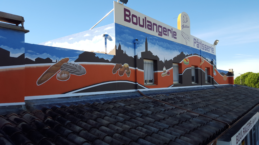 Projet « Boulangerie – Pâtisserie Gilles » Réalisation d’une fresque monumentale de 120 m² sur la façade de la Boulangerie-Pâtisserie Gilles, un établissement polyvalent qui propose également un bar, un restaurant et des pizzas en soirée.L’objectif de cette fresque était de renforcer l’identité visuelle de l’enseigne et d’attirer le regard grâce à une intervention graphique visible de […]