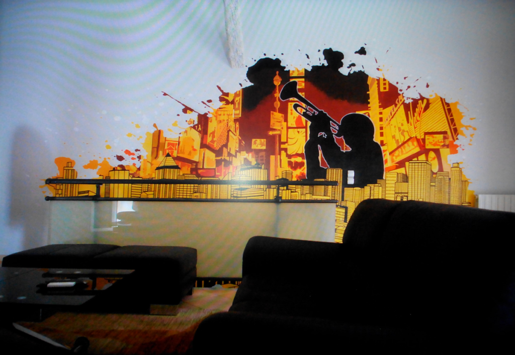 Projet « Jazz in NY » Réalisation d’une fresque murale intérieure de 60 m², pour un particulier passionné de jazz et de l’ambiance de Broadway.L’objectif était de créer une scène immersive et urbaine, évoquant à la fois l’énergie des concerts live et l’atmosphère vibrante de New York. La composition s’organise autour d’un paysage urbain stylisé, fait de […]