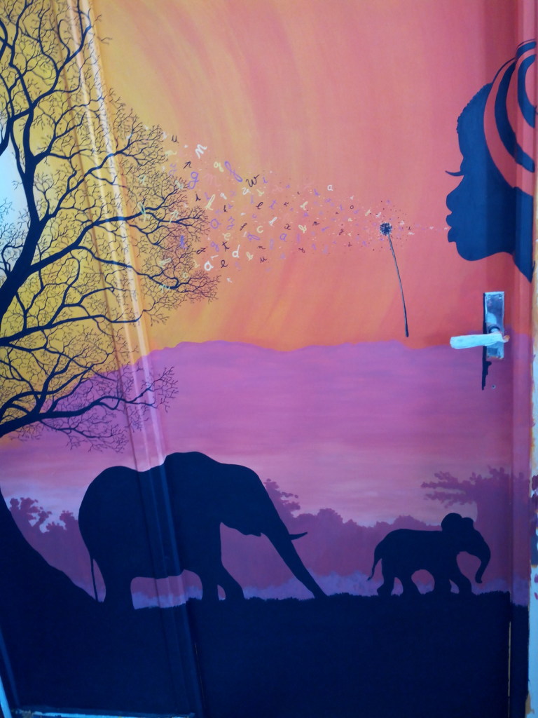 Projet « Sème les mots » Intervention artistique sur deux portes d’angle intérieures pour l’association Faso-Savoir, structure engagée dans la transmission des savoirs et la solidarité entre la France et le Burkina Faso.L’objectif de cette création était de transformer un espace de passage en une scène visuelle évocatrice, porteuse de sens et d’identité culturelle. La fresque s’organise […]