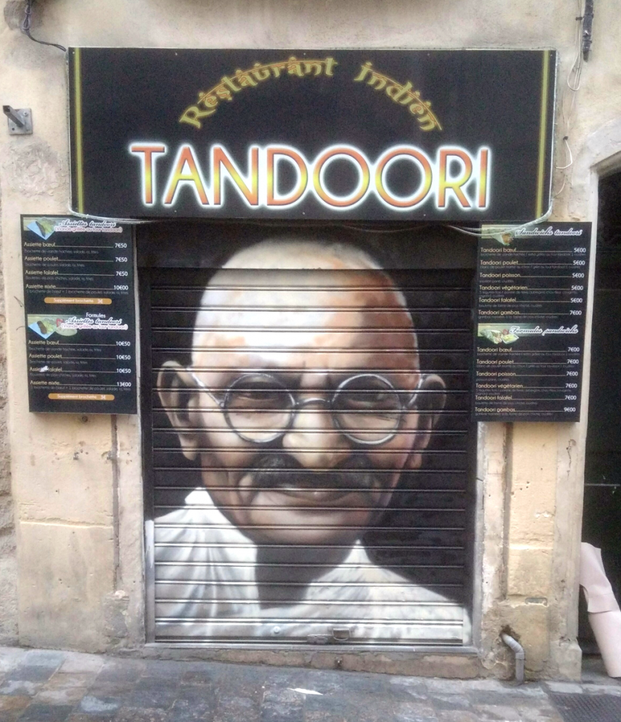 Projet « Restaurant Tandoori » Réalisation d’une fresque peinte sur deux volets roulants pour la façade du restaurant indien Tandoori à Montpellier.Ce projet vise à créer une identité visuelle forte et narrative, visible même lorsque l’établissement est fermé, en mêlant réalisme pictural et imagerie graphique inspirée de la culture populaire indienne. Le premier volet met en scène […]