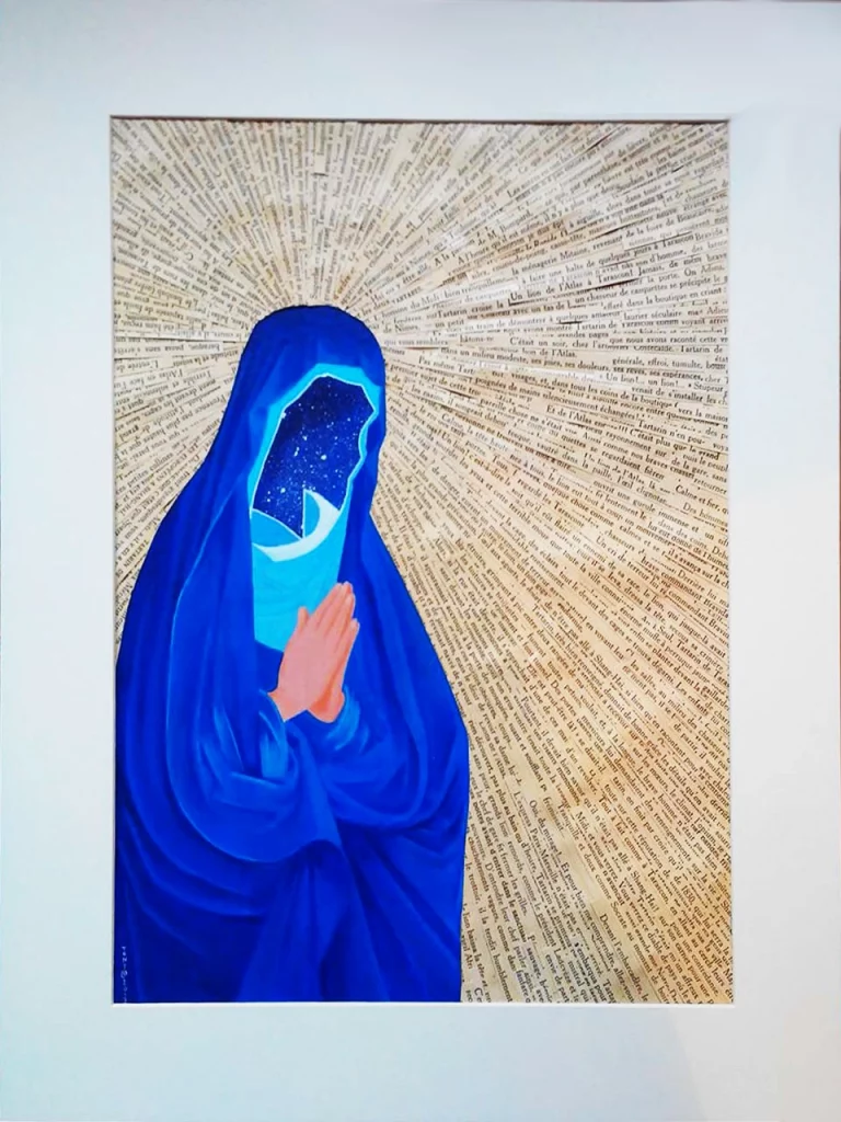 MADONE Titre : Série « Madone » Dimension : Mixte Technique : Posca, Acrylique et Papiers découpés Support : Carton Date de réalisation : 2012 Madone drapée – 40×30 cm Madone aux oiseaux – Dyptique 90×30 cm Madone coulante – 110×80 cm Madone à la pomme – 40×30 cm Madone Étoile – 50×50 cm Madone – 40×30 […]