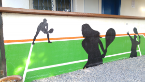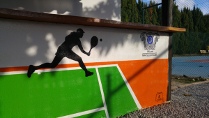 Réalisation d’une fresque murale extérieure de 8×1,5 mètres pour le Tennis Club de Marsillargues (TCM).