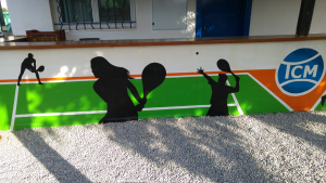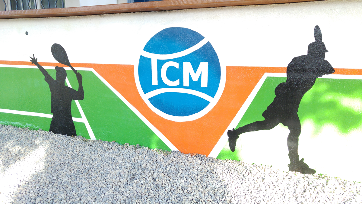 Au centre de la fresque, figure le logo du club (TCM), mis en valeur comme élément identitaire fort.