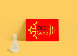 Le logo s’articule autour d’un rouge profond, couleur emblématique de la région Occitanie, associé à un jaune vif inspiré du blason régional. Ce duo symbolise à la fois l’innovation biomédicale, l’énergie de la recherche, et l’ancrage territorial fort. La structure visuelle évoque l’ADN et la précision des technologies de pointe, tout en assurant une lisibilité claire et professionnelle.